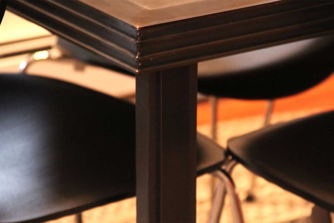 We enjoy creating unique dining tables, end tables, coffee tables, chairs, and ottomans for indoor and outdoor use. Architectural features for kitchen, bath, and living areas with custom metalwork needs are solved with custom fabrication and specialty finishes including patina, painted, and mirror-polished surfaces.